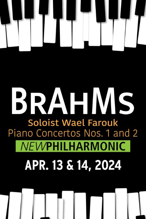 Kirk Muspratt, Music Director & Conductor Wael Farouk, Piano Soloist Egyptian-born pianist Wael Farouk teams up with New Philharmonic again, this time for Brahms Piano Concerto No. 1, Brahms’ first-performed orchestral work, and his Piano Concerto No. 2, written 22 years later as a “symphony with piano.” New York Concerts calls Farouk, “Absolutely Masterful…..run – don’t walk – to hear Wael Farouk!”