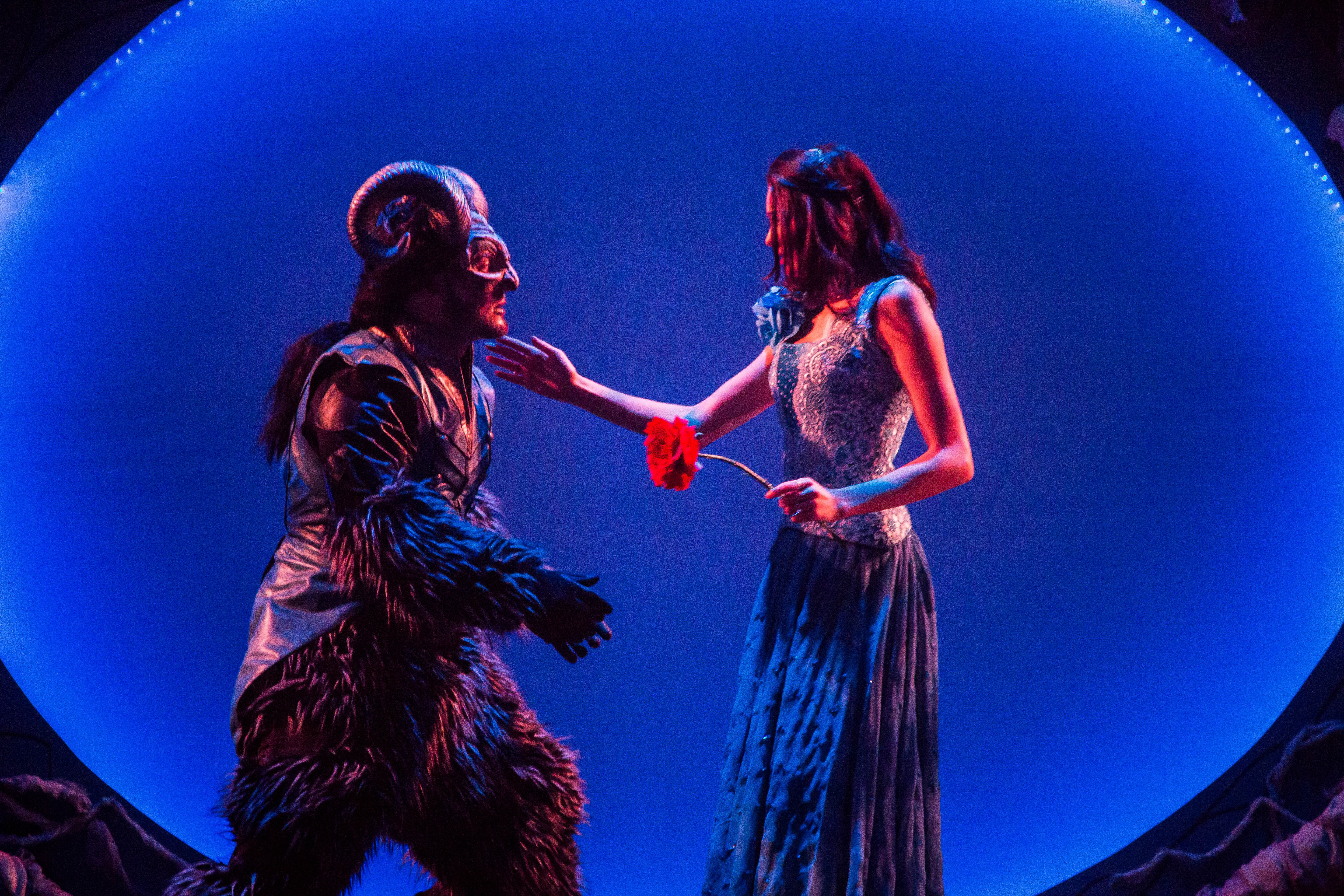 No sing-alongs or talking teacups from Disney’s beloved animated film in this piece of theater art. Though just as magnificent, this show’s got bite.