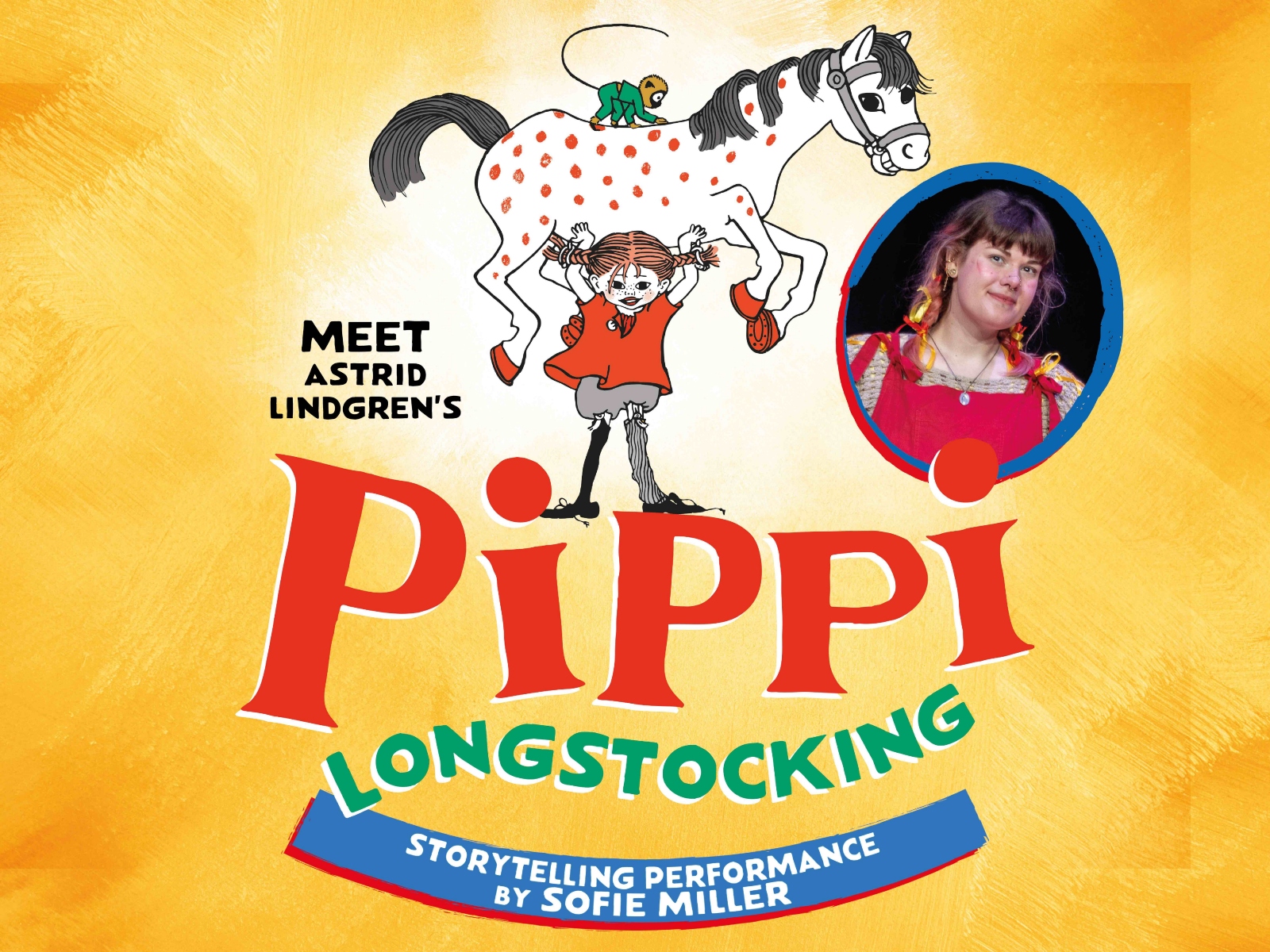 This playful and quirky solo storytelling performance, with audience participation, introduces children to Astrid Lindgren’s much-loved Pippi Longstocking, ‘the strongest girl in the world’. Created for you by Olivier award-winning director Helena Middleton, with original music by Brook Tate and adapted for the stage by acclaimed storyteller Danyah Miller.