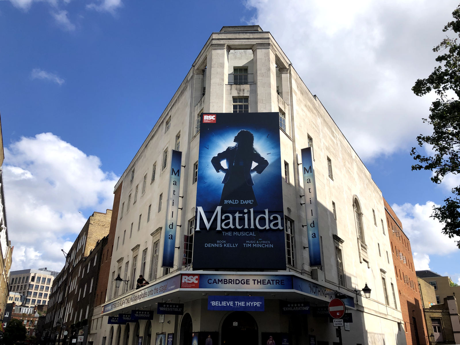 Matilda The Musical is at the Cambridge Theatre Theatre in London. The Cambridge Theatre is located in Seven Dials. It's close to the Shaftesbury Theatre, the Gillian Lynne Theatre, and the Theatre Royal Drury Lane.