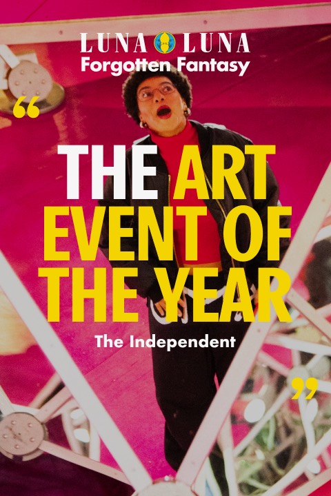 Housed within a 60,000-square-foot warehouse complex, Luna Luna: Forgotten Fantasy unravels the tale of the most fantastical fairground the world has ever known. The immersive experience invites visitors of all ages to feast their eyes on rides and attractions rescued from the original 1987 park while learning how Luna Luna was created, lost, and reborn through story-driven installations. On evenings and weekends, performers, including stilt-walkers, jugglers, and puppeteers from Bob Baker's Marionettes, roam the grounds of Luna Luna: Forgotten Fantasy as a playful homage to the original park.