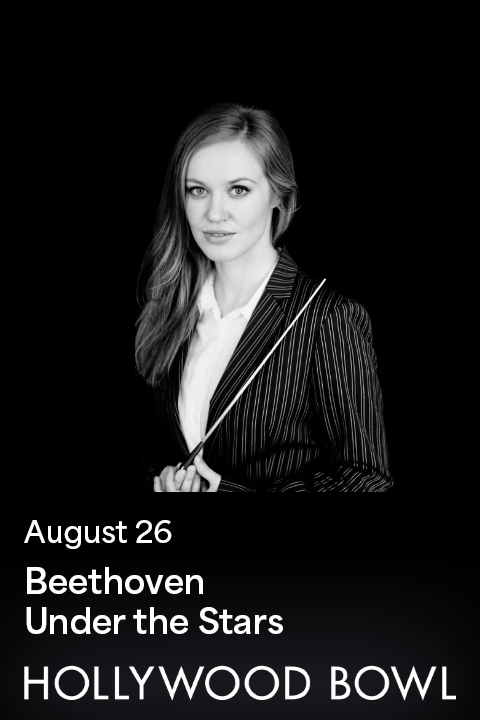 When the sun goes down and the stars come out, the Los Angeles Philharmonic fills the Hollywood Hills with the dark and ominous swoosh of strings from Beethoven’s Egmont. Giedrė Šlekytė, the up-and-coming conductor from Lithuania, kicks the overture into high gear as she takes off on a vigorously triumphant fanfare of heroic brass and woodwinds.