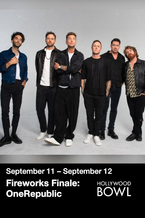 Fireworks Finale: OneRepublic is at Los Angeles's Hollywood Bowl, which is located at 2301 N. Highland Ave., Los Angeles, 90068.