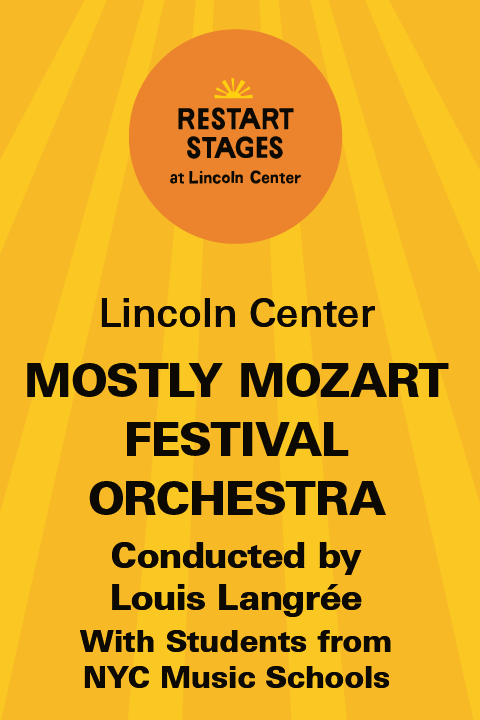 An orchestra performance of Mozart’s first and last symphonies with the Mostly Mozart Festival Orchestra and NYC students, conducted by Louis Langrée.