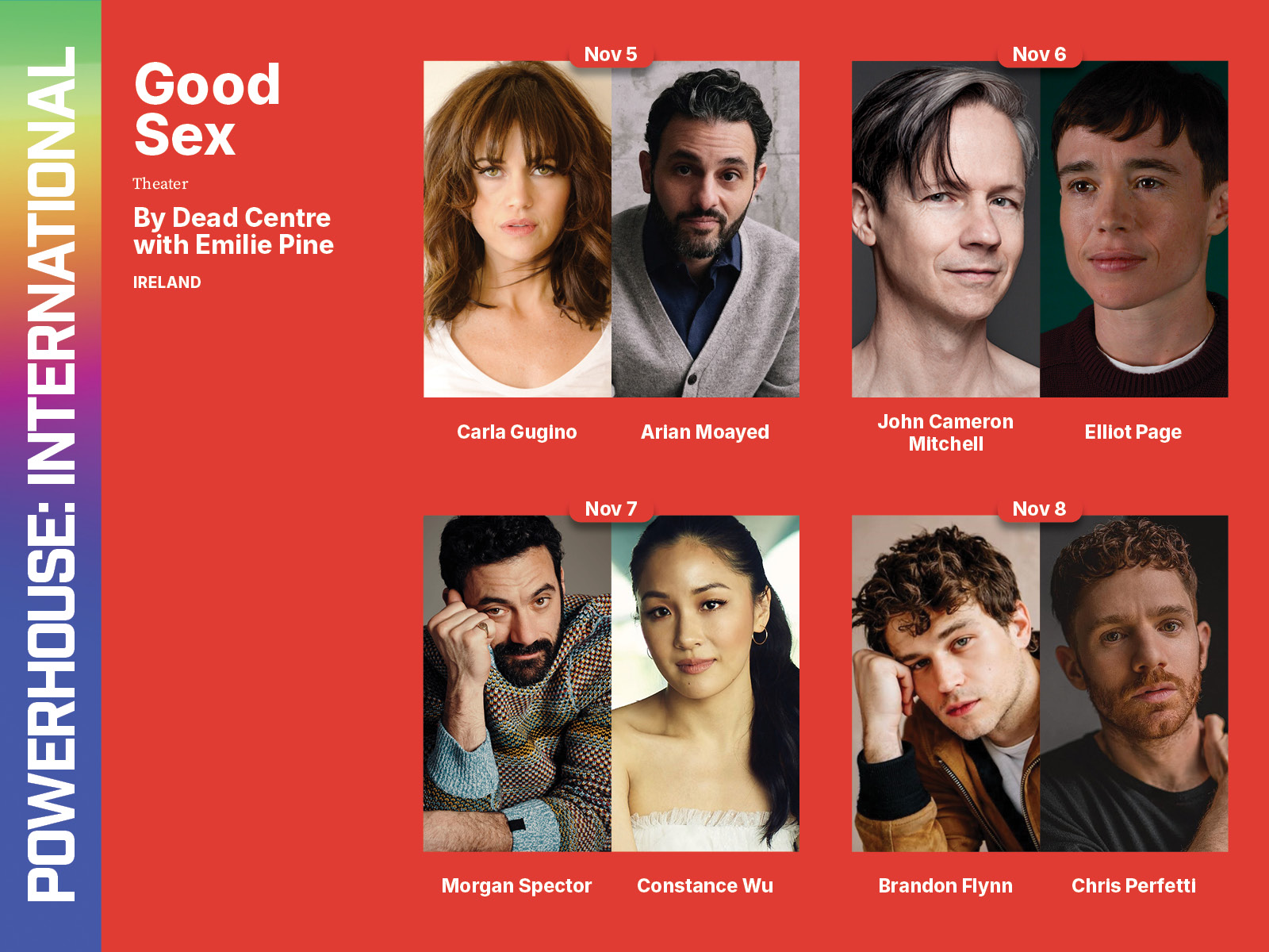 Award-winning Irish theater company Dead Centre returns to New York after performances at the Abrons Arts Center (Lippy, Obie Award winner), BAM (Hamnet) and the Irish Arts Center (Chekhov’s First Play) with a collaboration with award-winning novelist and essayist Emilie Pine. Born out of the pandemic, when touching was a transgressive act and our bodies were sites of sickness, Good Sex is a love story for a loveless age.