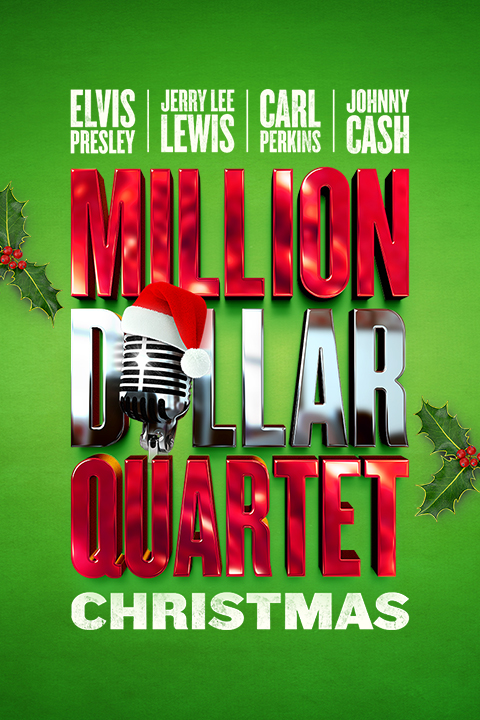 In MILLION DOLLAR QUARTET CHRISTMAS rock ‘n’ roll newcomers, and soon to be legends, Johnny Cash, Jerry Lee Lewis, Carl Perkins and Elvis Presley come together again to celebrate the holidays. Inspired by the true story of their December 1956 homecoming at Sun Records, this heartwarming rock n’ roll musical rings with sounds of the season and the chart toppers that made the Million Dollar Quartet famous. The gang is up to their usual antics as we journey through stories of Christmas past, present, and future in a joyful evening filled with nostalgic holiday hits including “Run Rudolph Run,” “Jingle Bell Rock,” “I’ll Be Home For Christmas,” and more.