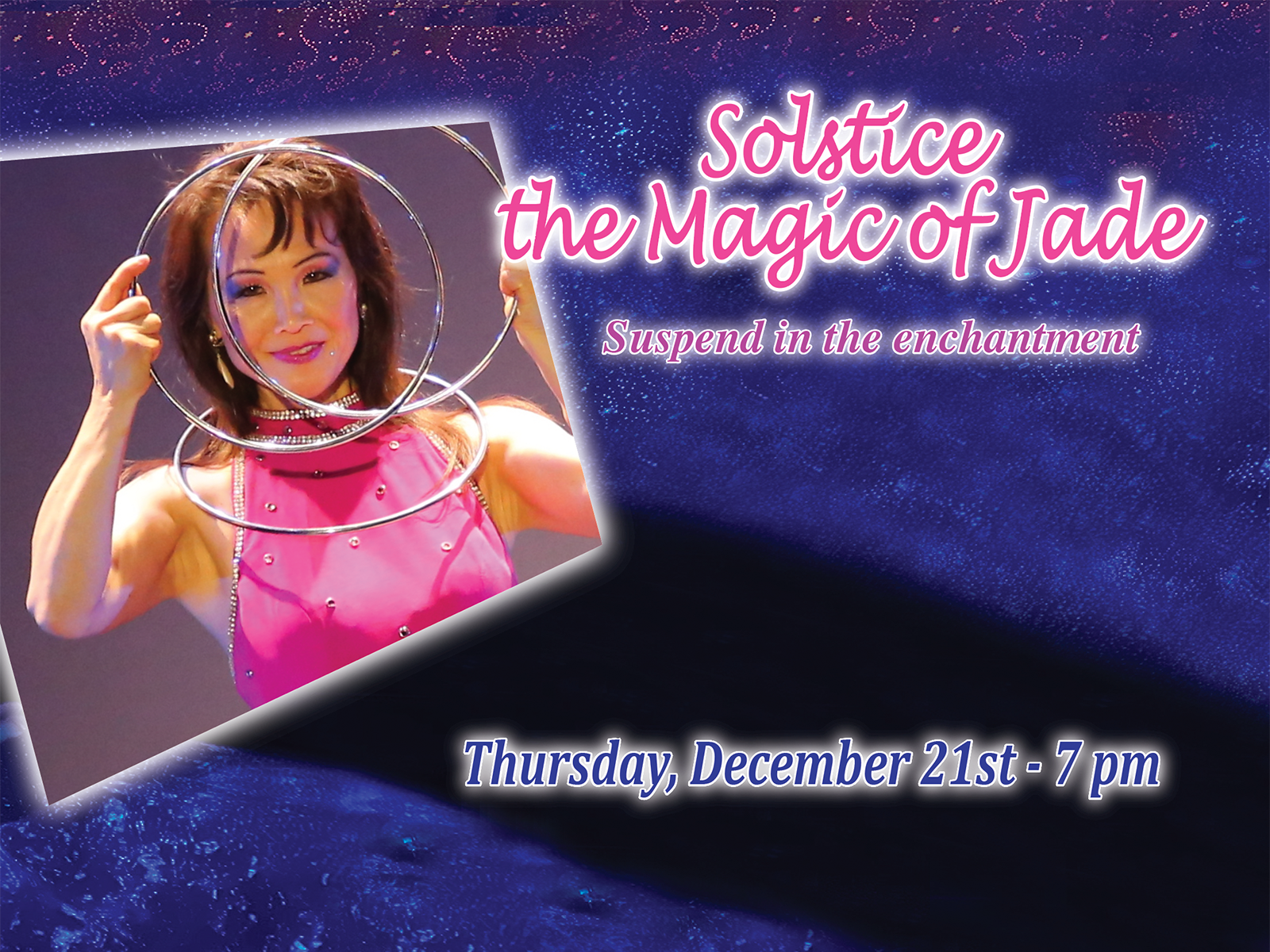 Suspend in the enchantment of the winter solstice. Step into a mystical wonderland with Jade and experience her evocative and genius magic on this enchanting journey! Immerse into several otherworldly realms at the majestic Gregangelo Museum during this progressive magic experience... Taste magical elixirs. Make new friends. Float through a dazzling starry winter sky, and walk through a snow flurry in San Francisco! Limited tickets for this unforgettable experience!